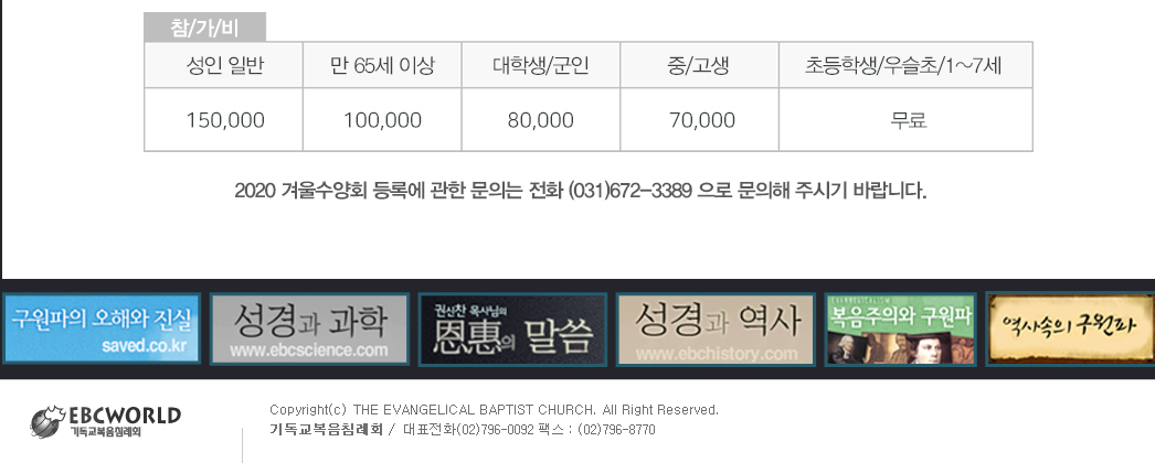 기독교복음침례교회 2020년 12월 30일 ~ 2021년 1월 3일기간으로 진행되는 2020년 겨울수양회 온라인 등록 기간입니다.
