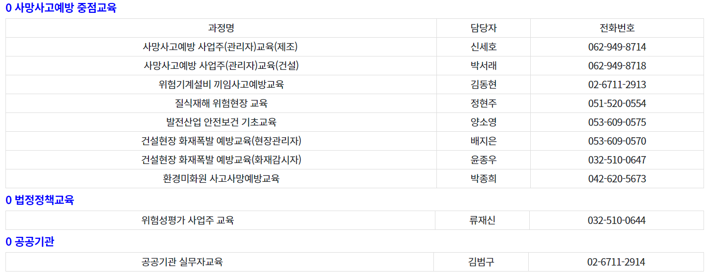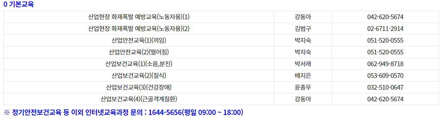 정기안전보건교육 등 이외 인터넷교육과정문의는