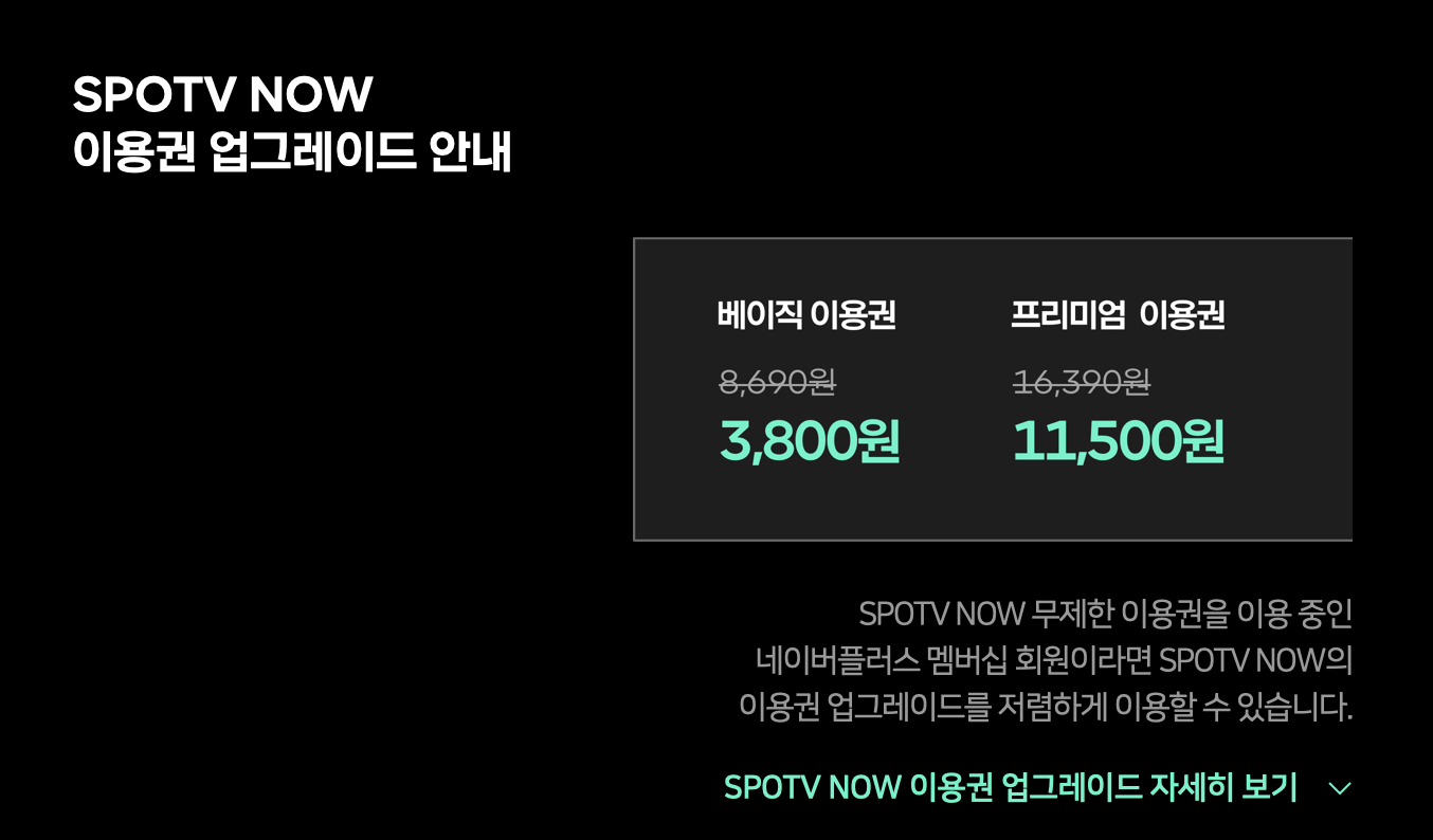 스포티비나우 베이직 이용권 업그레이드 - 월 3,800원