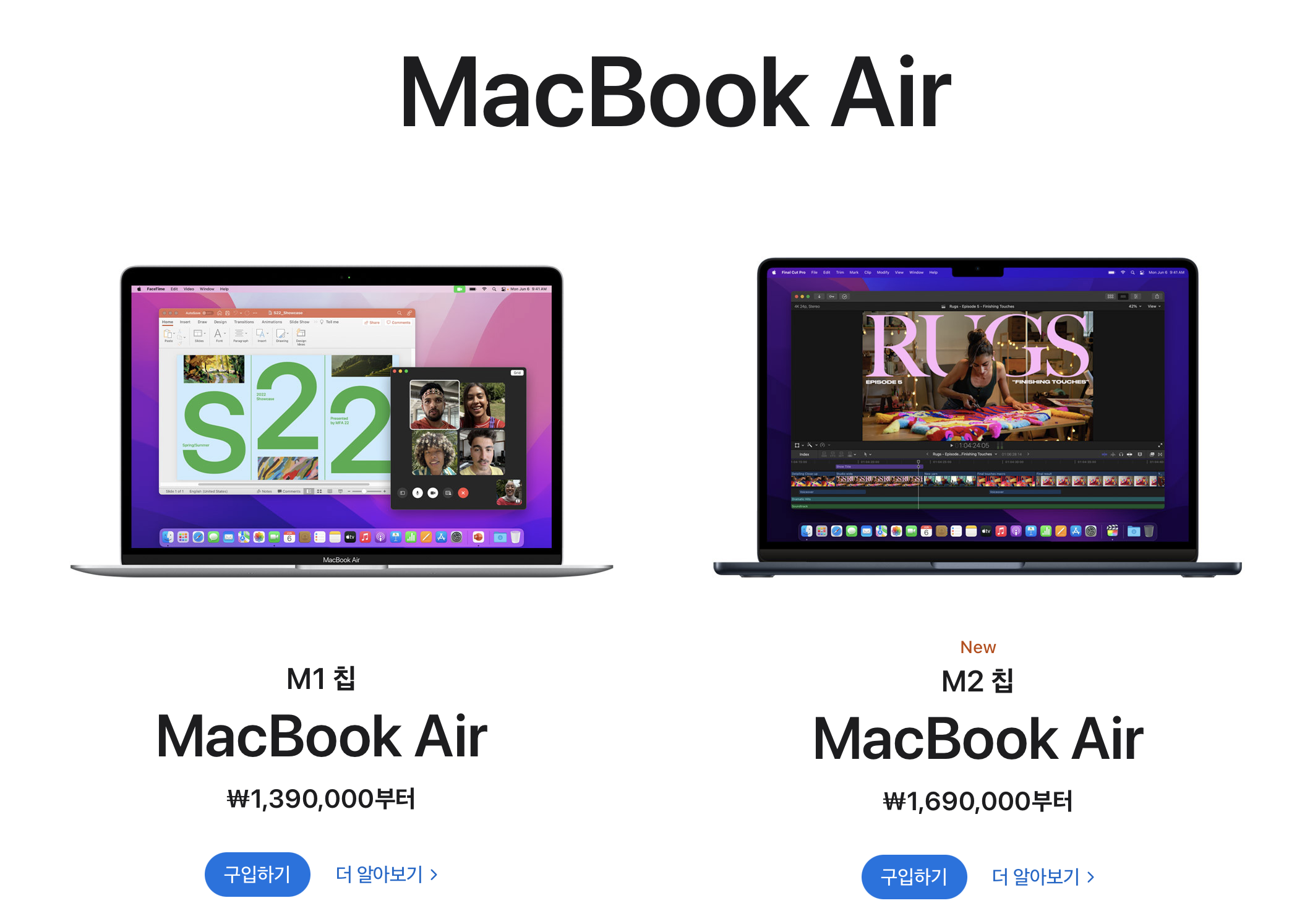 개인적으로 무조건 에어 M2 돈이 좀 아깝다 싶으면 그냥 M1에어.