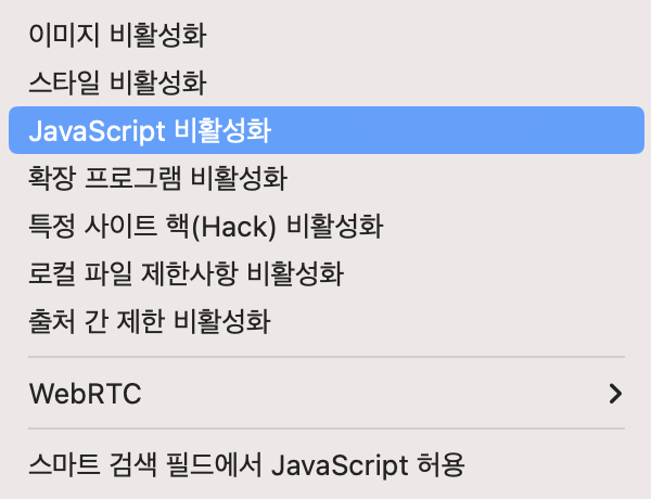 자바스크립트 활성화가 된 경우 특정 페이지에서 페이지 소스를 볼 수 없는데