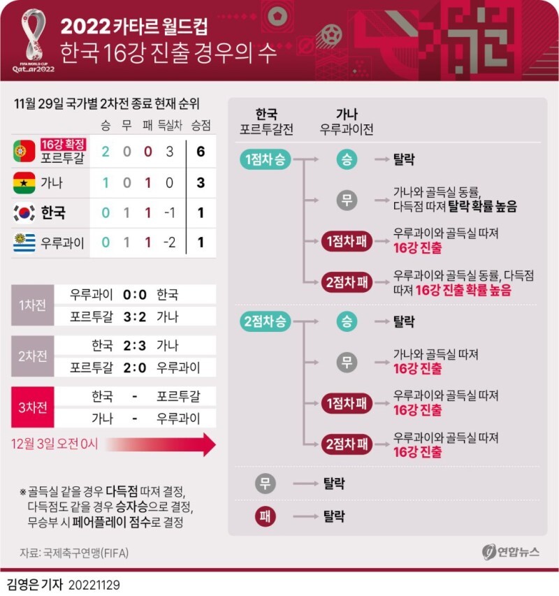 2022 카타르월드컵 한국 16강 진출 경우의 수