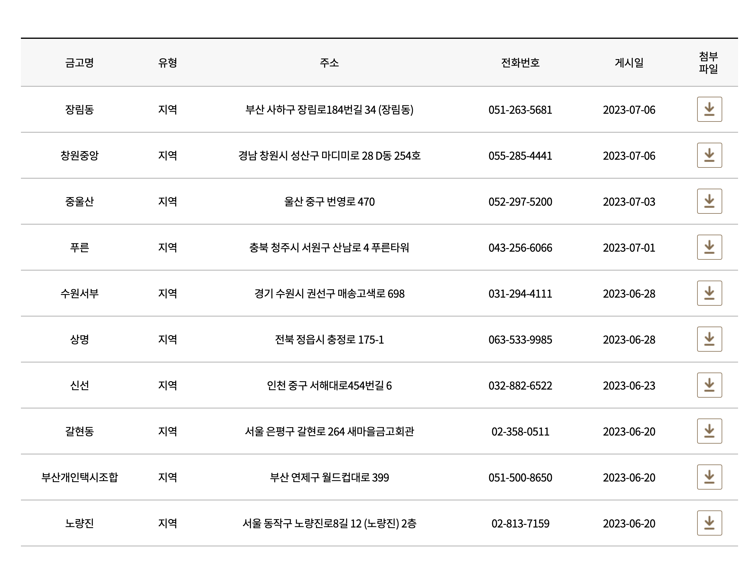 정기공시 페이지로 이동하셔서 지역 - 지점을 검색하시면 쉽게 찾으실 수 있습니다. 지점명을 모르시면 지역까지 좁혀서 하나씩 찾아보시면 됩니다. 지점이 상당히 많지만, 지역으로 범위를 좁히면 2-3페이지 안에서 다 보실 수 있습니다.