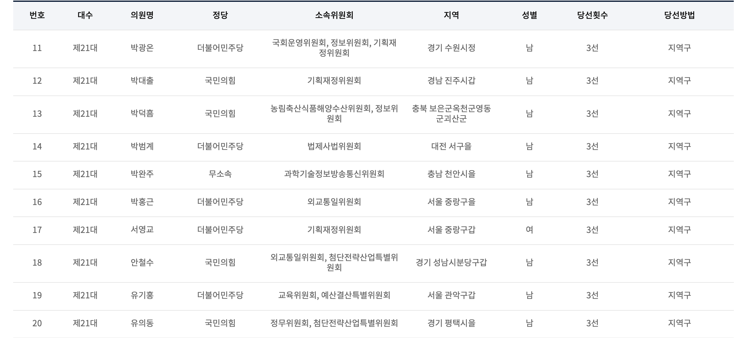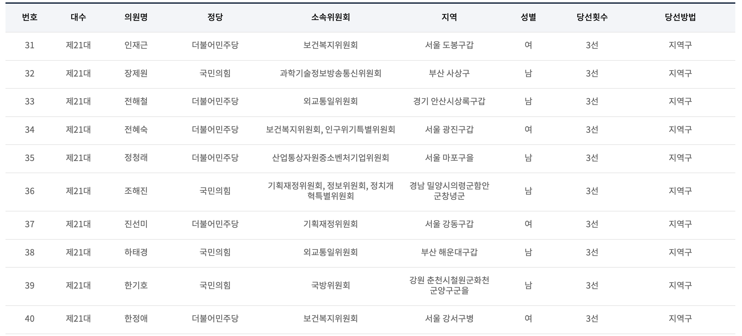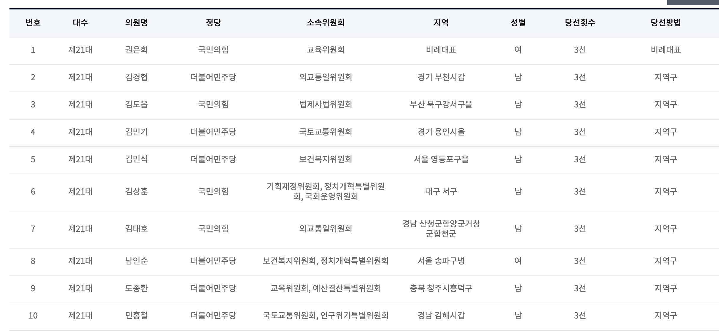 제21대 국회의원 현역 중 당선횟수가 3선인 의원 명단입니다.