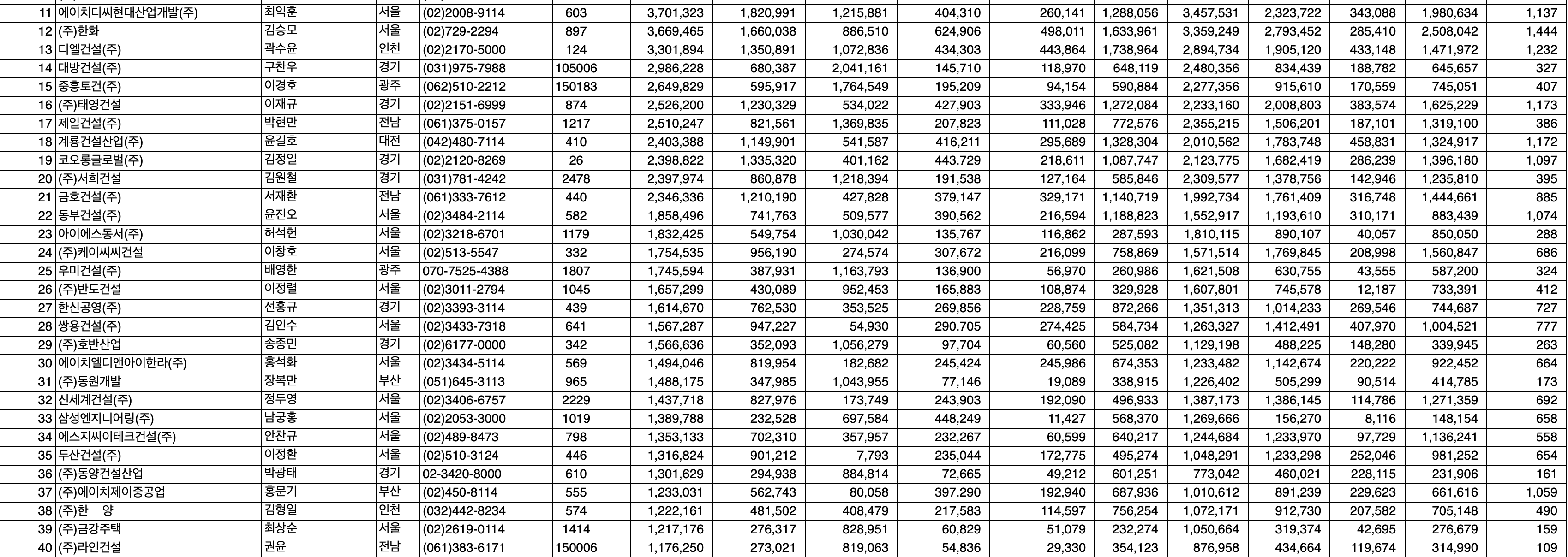 우리가 많이 들어서 아는 아파트 브랜드 건설회사들의 시공능력평가액을 확인할 수 있는 곳이기도 합니다.