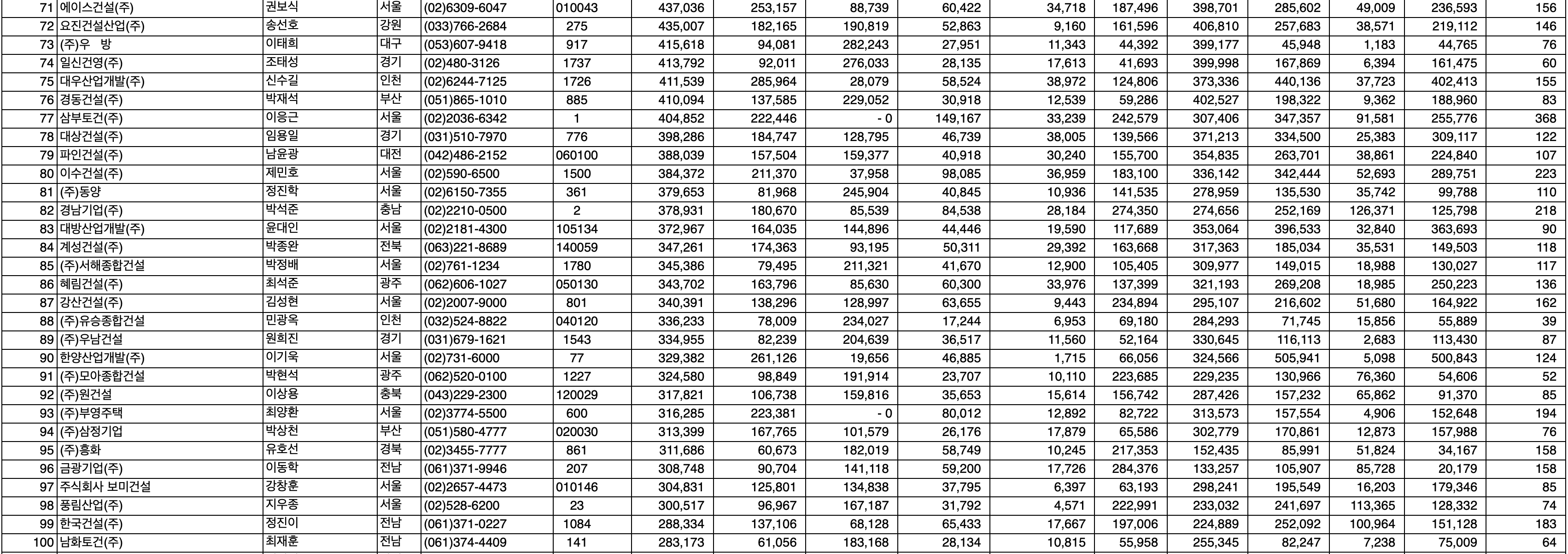 엑셀파일을 다운로드 하시면 5개 분야 시공능력평가액 정보를 상세하게 보실 수 있습니다.