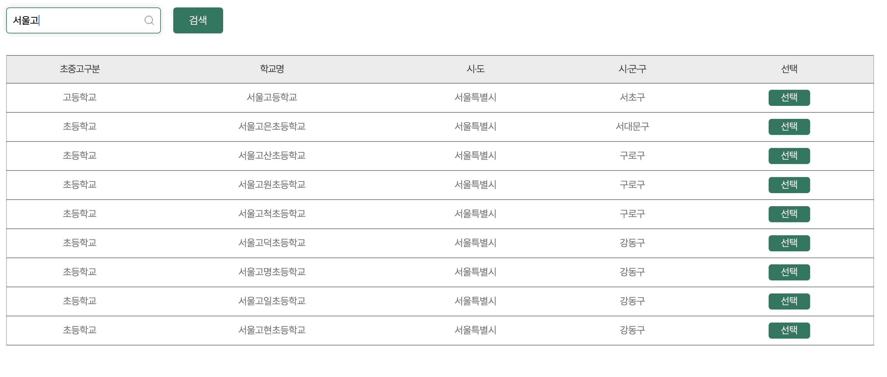 현재 재학중인 학교를 검색해서 확인하시고, 이어진 페이지에서 학년 반 번호 이름 성별 그리고 담임 선생님으로부터 확인받은 비밀번호를 입력하시고 다음으로 가기를 눌러주세요.