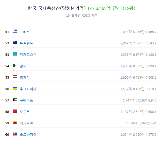 2020/10/20 - [분류 전체보기] - 2019년 세계 1인당 국민소득 순위 GDP