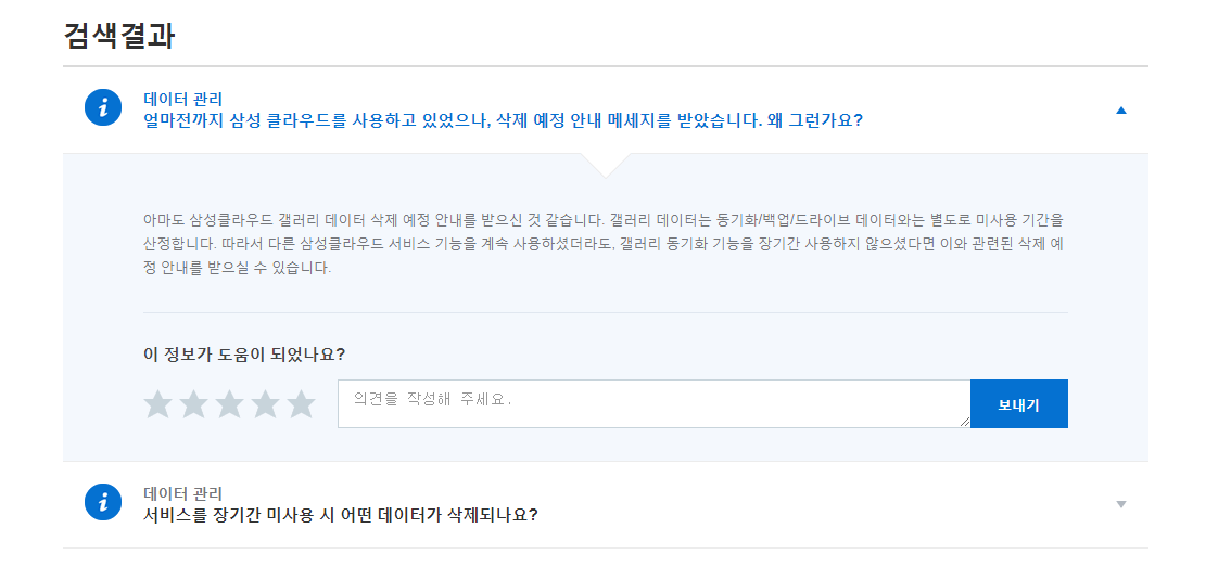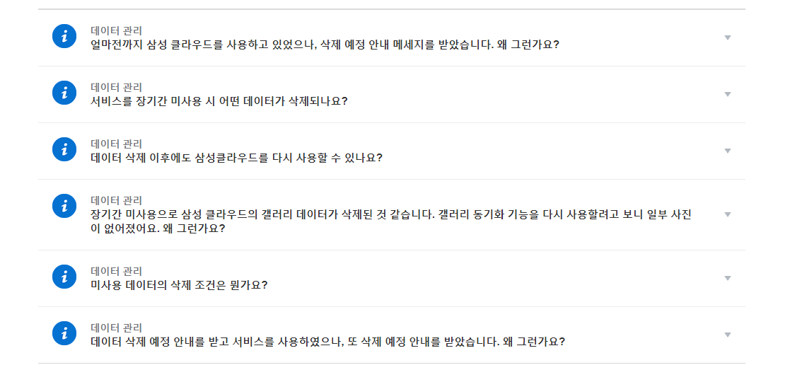 삼성클라우드 관련 FAQ 페이지 입니다.