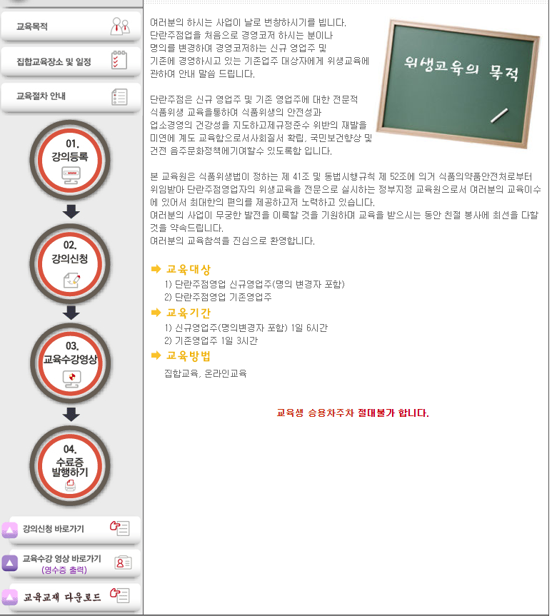 신규영업주는 1일 6시간, 기존영업주는 1일 3시간 교육이고