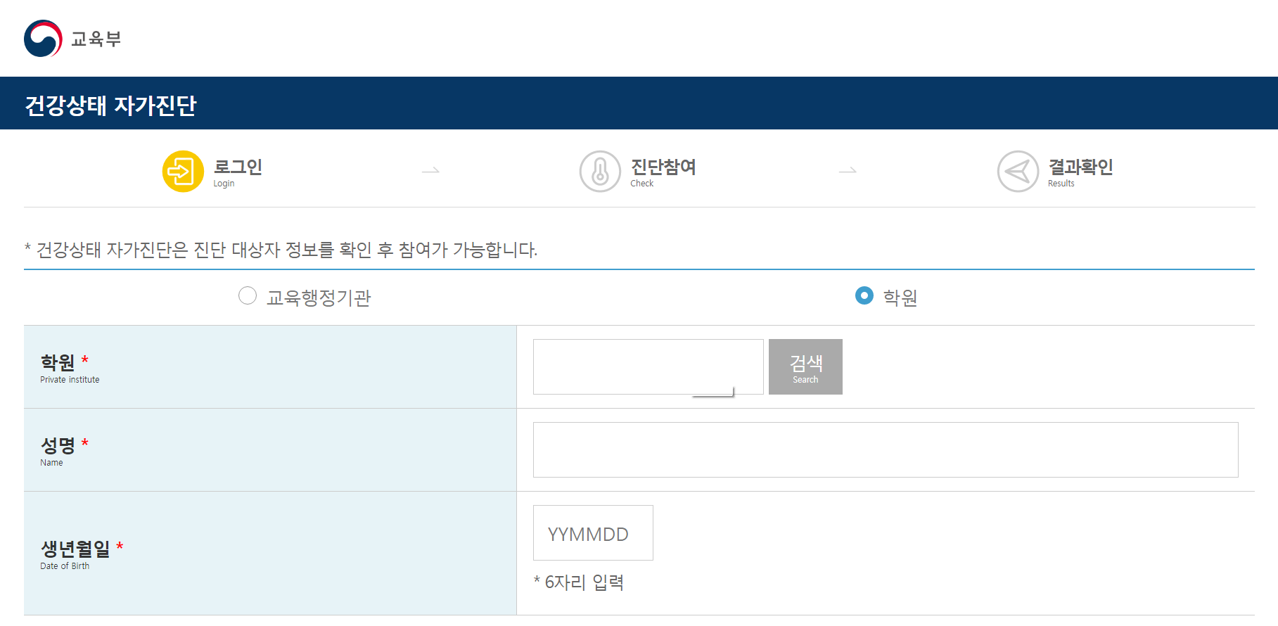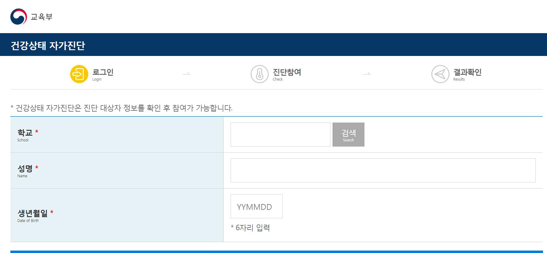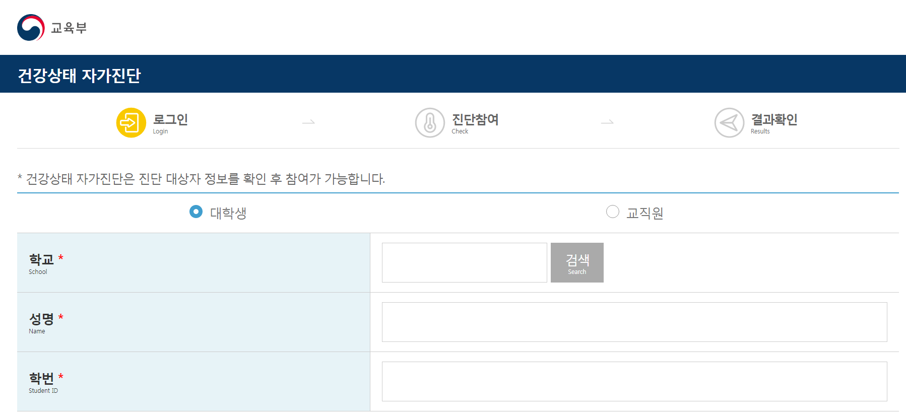 로그인을 해야 했지만, 이제는 교육부 건강상태 자가진단 사이트를 통해