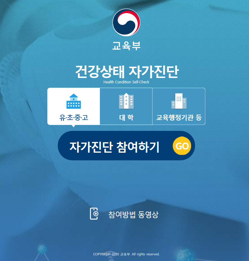 유치원 및 초중고와 더불어 대학생과 교직원, 교육행정기관과 학원도 해당 사이트를 통해 건강상태 자가진단을 진단 제출할 수 있도록 운영되고 있습니다.